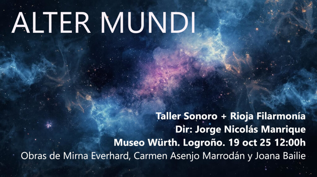Tras diez años de colaboración ininterrumpida participando en sus respectivos festivales de música contemporánea, Taller Sonoro y Rioja Filarmonía se dan por primera vez la mano para coproducir Alter Mundi, un concierto inspirado en el mundo en el que vivimos, en el entorno que nos rodea, en el cambio climático y el deshielo de los glaciares… Un mundo en continuo cambio, transformación y mutación; pero también personas en un constante movimiento, flujo y evolución.
